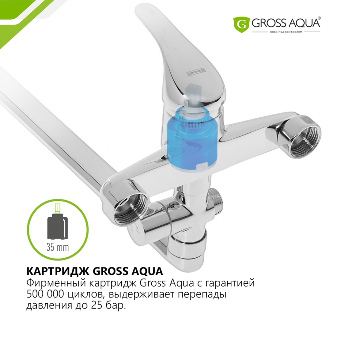 Смеситель GROSS AQUA Mini для ванны и душа с длинным изливом 350 мм 7210213-35F интересное: