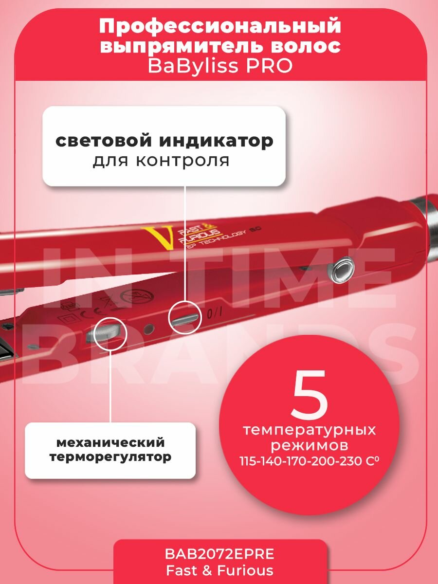 Щипцы для волос BaByliss Pro Fast & Furious BAB2072EPRE красные 2,7 м. 115-230 C 60 Ватт