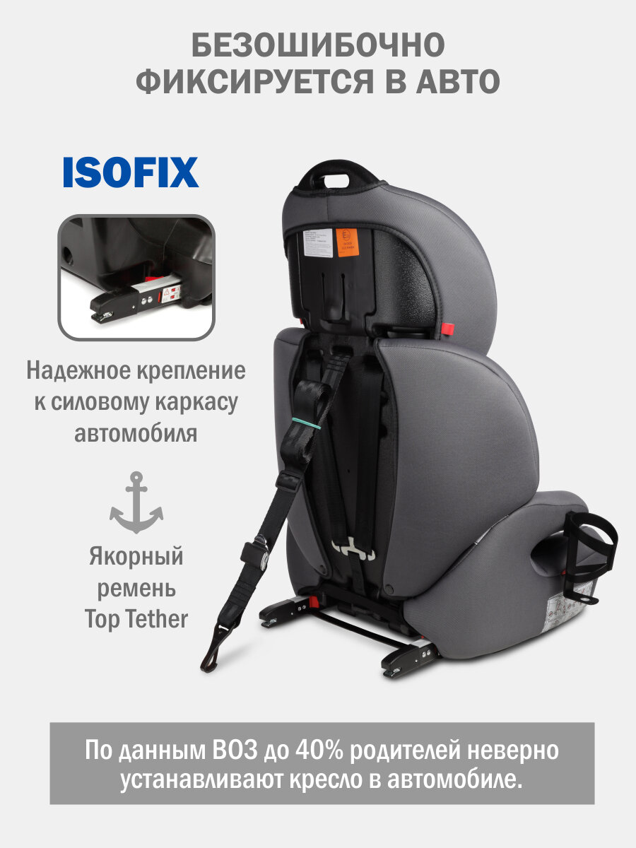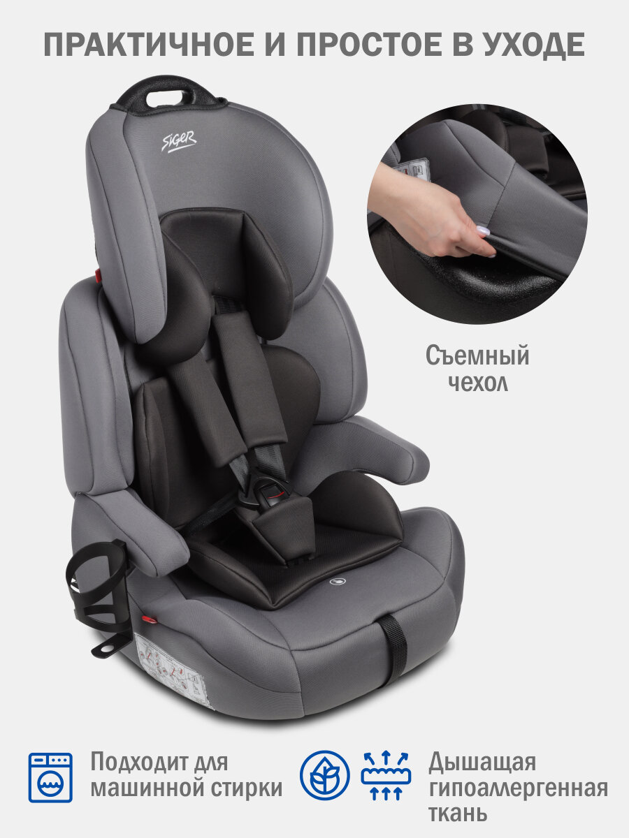 Автокресло детское Siger Стар ISOFIX LUX от 9 до 36 кг, с подстаканником, черный графит