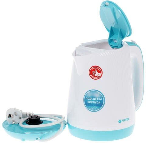 Электрочайник Vitek VT-7059 W белый [пластик, 1.7 л, 2200 Вт, фильтр, скрытый нагревательный элемент] интересное: