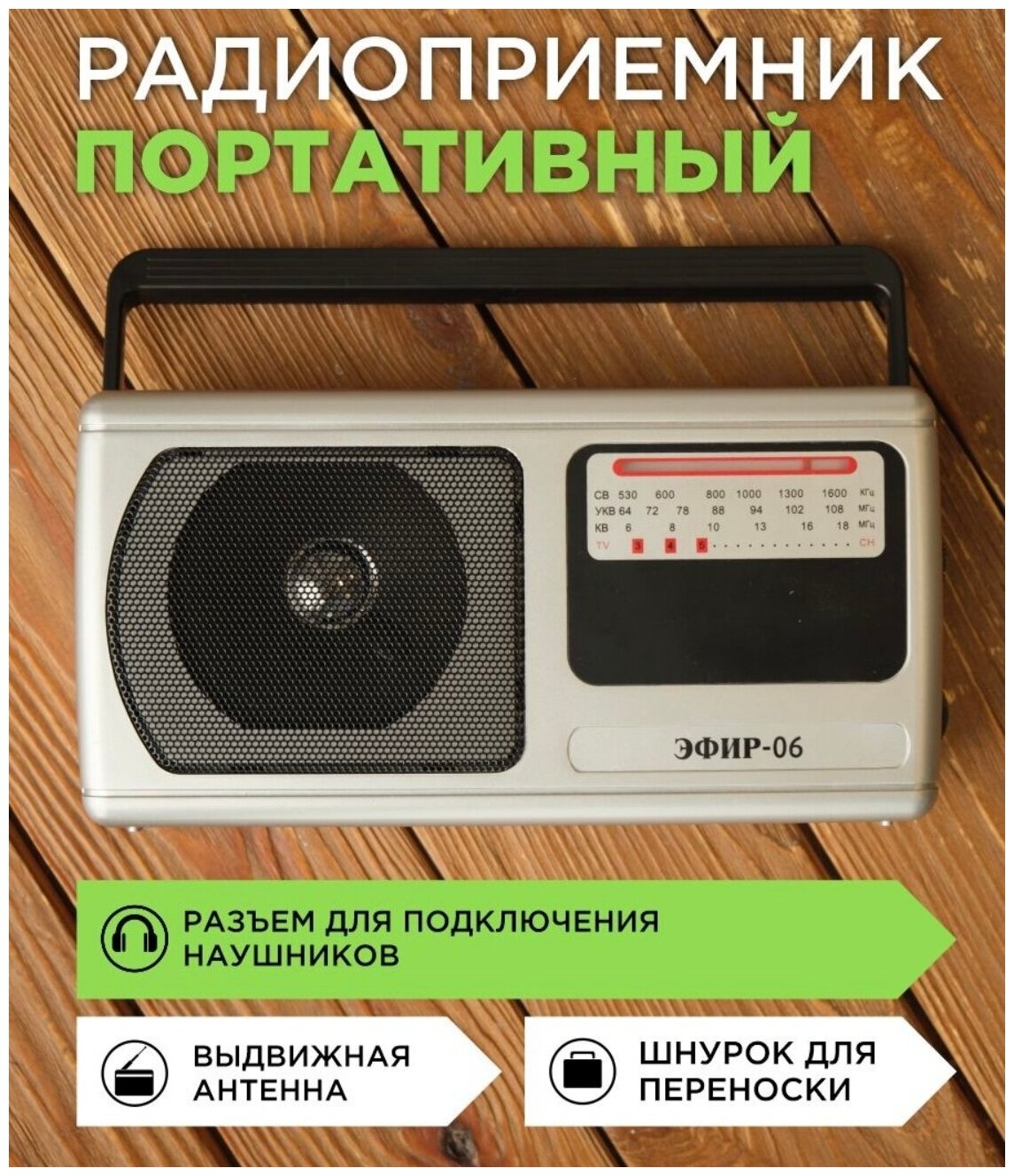 Ниже Вы можете прочитать отзывы на Радиоприемник переносной эфир 06 от сети, ознакомится с подробными характеристиками, посмотреть интересные обзоры и фотографии на Радиоприемник переносной эфир 06 от сети.