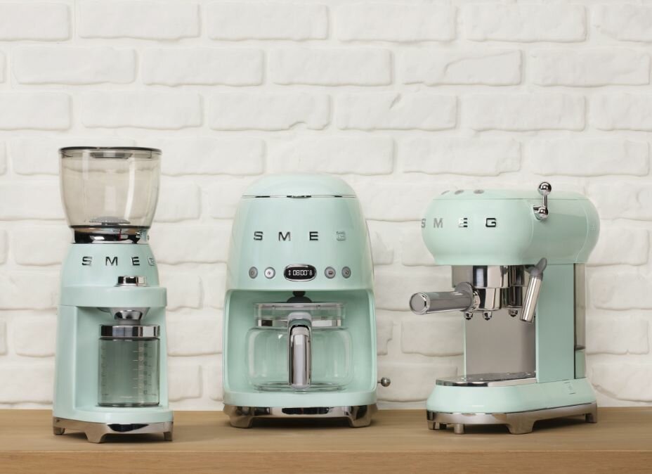Кофемашина Smeg стиль 50-х годов, пастельный голубой
