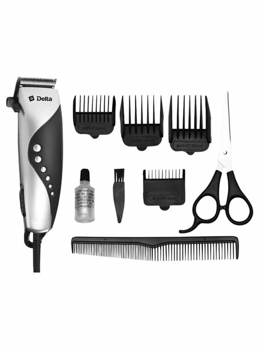 Машинка для стрижки DELTA DL-4049 серебро, 10Вт, 4 съемных гребня