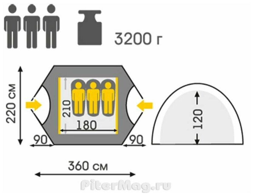 | Длина внешней палатки | 360 см |