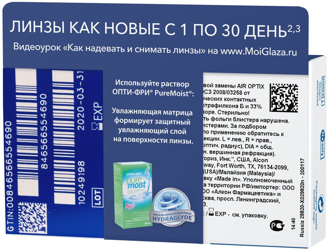 Контактные линзы AIR OPTIX HYDRAGLYDE 3 линзы R 8,6 -9,0