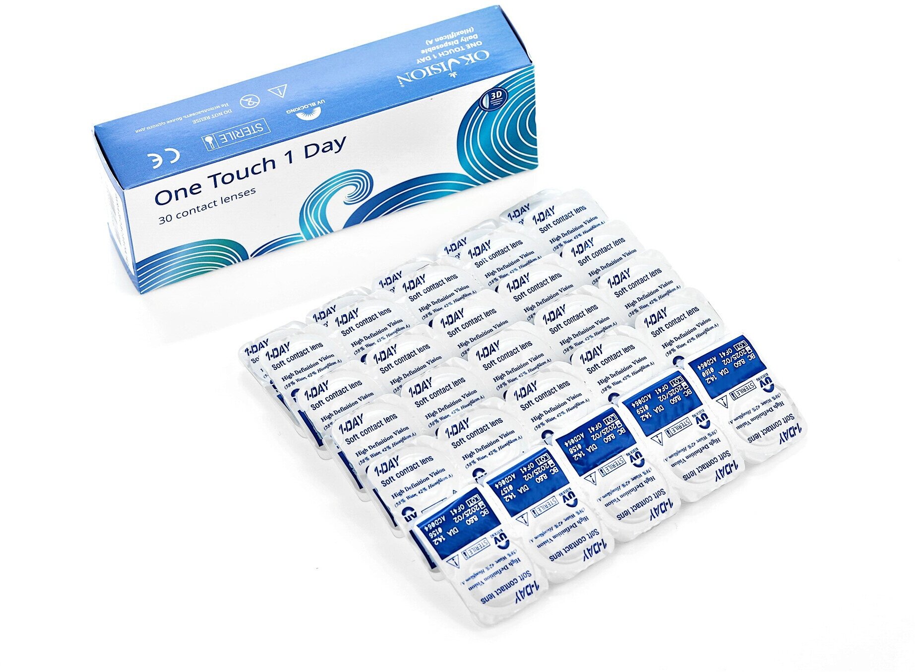 Однодневные контактные линзы OkVision OneTouch 1 Day-6.5/8,6/14,2/30шт, гидрогель