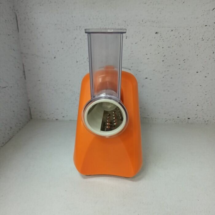 Выполняет функцию терки и шинковки благодаря 5 различным насадкам. Нужно лишь включить аппарат в сеть и загружать в отсек овощи или фрукты, надавливая сверху ступкой. Классный цвет, добавляет хорошего настроения и энергии на кухне. |