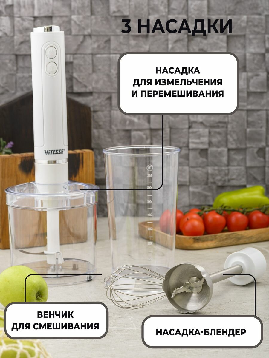 Блендер погружной Vitesse VS-227 400Вт,чаша для измельчения, венчик, погружная часть нерж. сталь