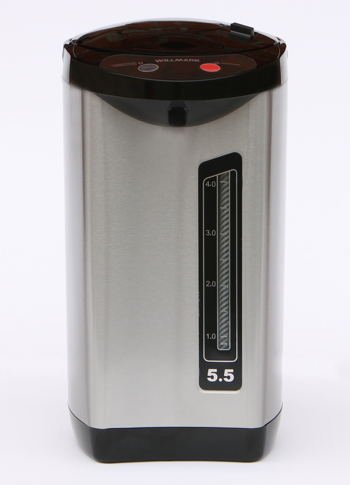 Термопот с помпой Willmark WAP-553CS объемом 5.5 л, с двойными стенками, функциями поддержания температуры и автоотключения, серебристый/черный