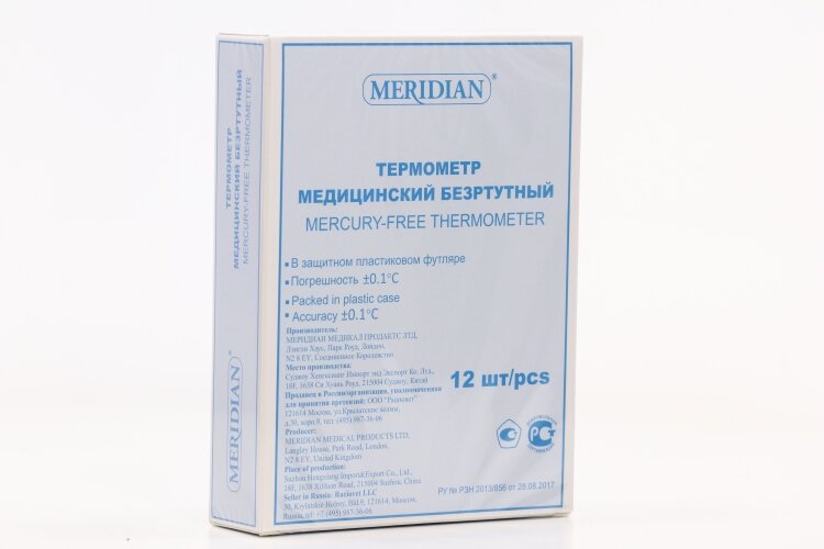 Термометр медицинский безртутный (НДС 20%) MERIDIAN, пластиковый футляр