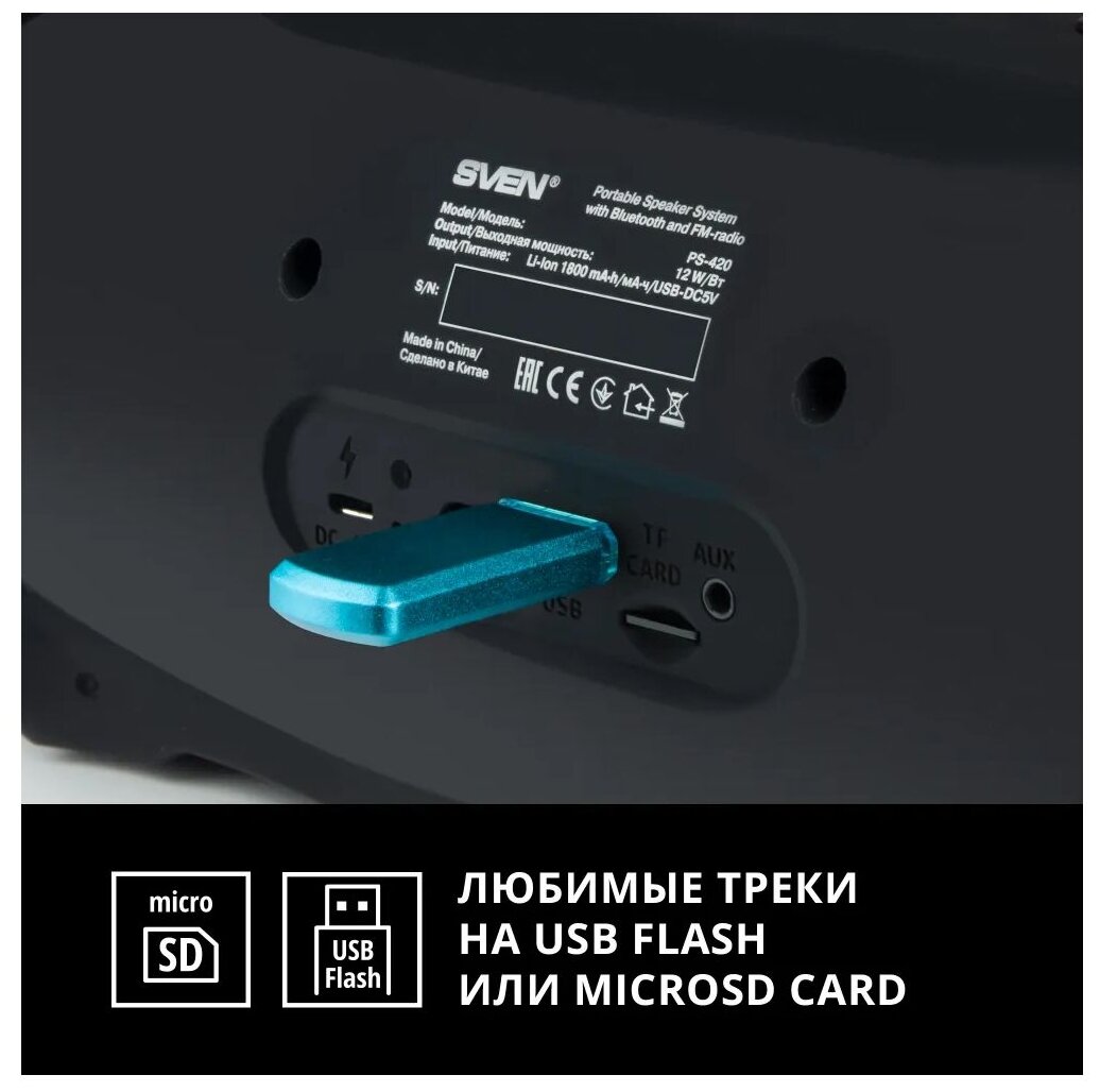SVEN АС PS-420, черный (12 Вт, Bluetooth, FM, USB, microSD, LED-дисплей, 1800мА*ч) SV-015220