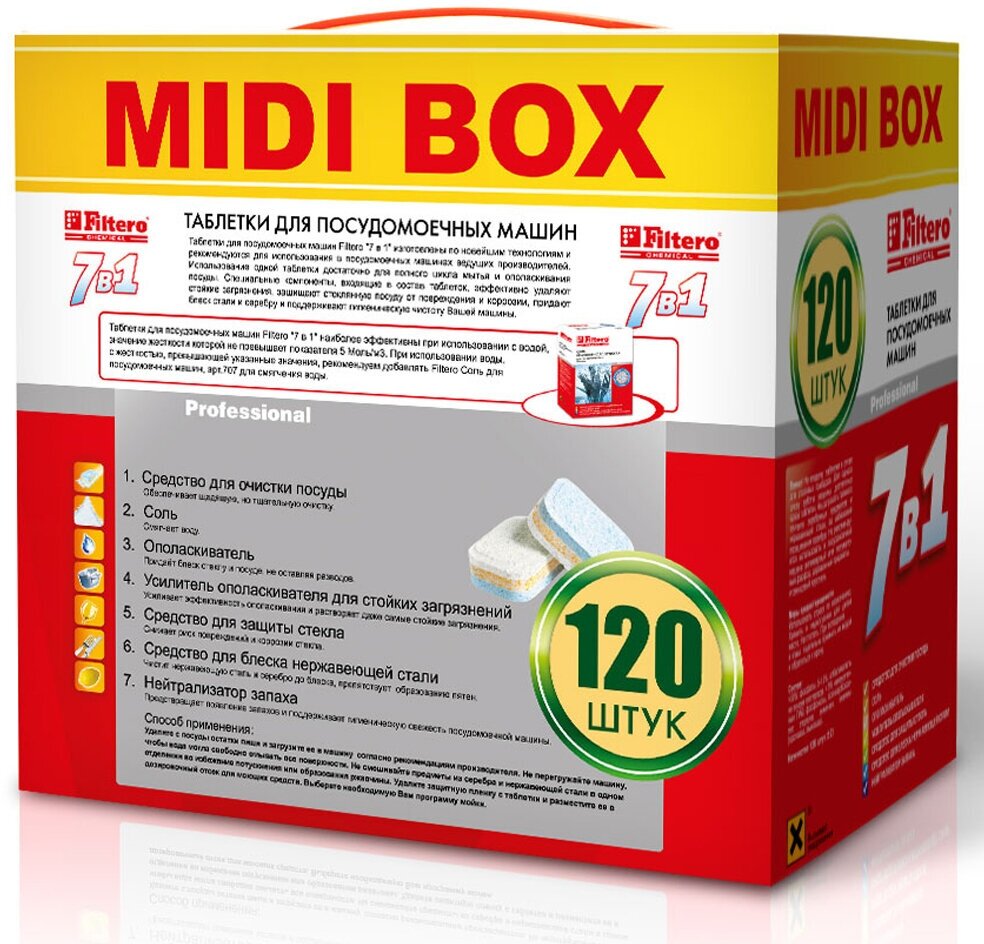 Таблетки Filtero"7в1" MIDI BOX, 120 шт арт.710
