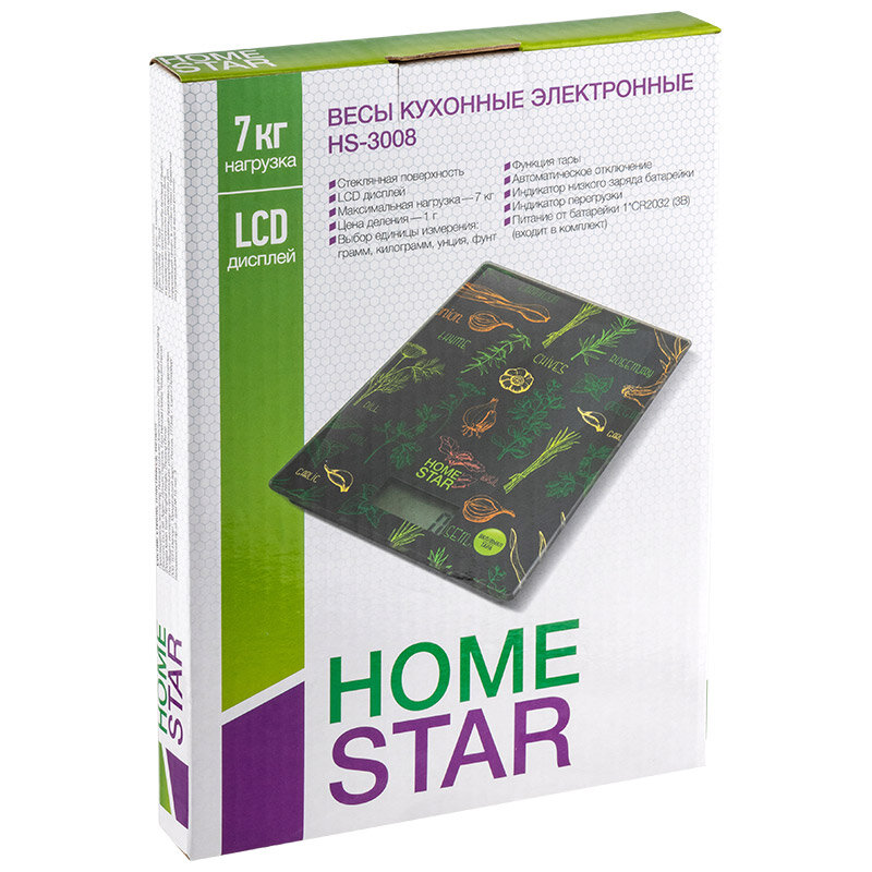 Весы кухонные электронные Homestar HS-3008 ( до 7 кг), дизайн специи