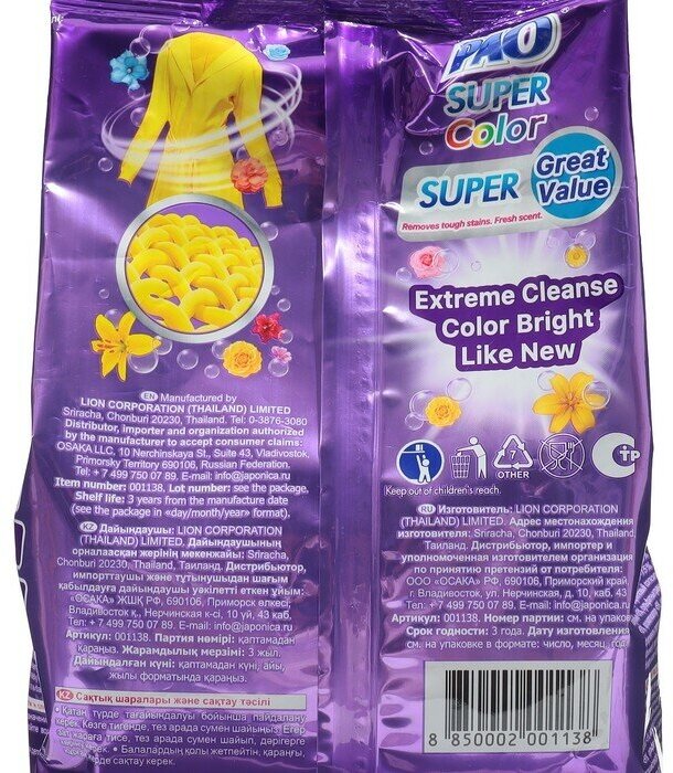 Ниже Вы можете прочитать отзывы на LION PAO Super Color Антибактериальный порошок для стирки цветного белья, 900 г, ознакомится с подробными характеристиками, посмотреть интересные обзоры и фотографии на LION PAO Super Color Антибактериальный порошок для стирки цветного белья, 900 г.