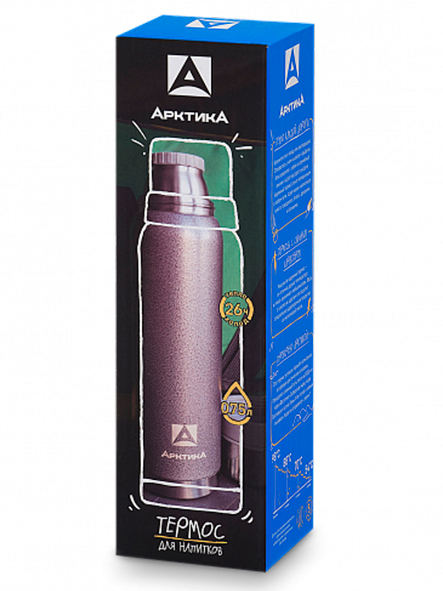 Термос арктика вакуумный. арт.106. 0.75л (синий). для напитков