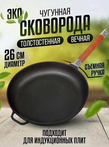 Сковорода чугунная со съемной ручкой Гардарика 0126, 26 см