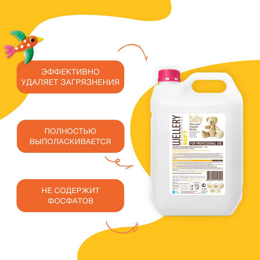 Wellery Soft baby гипоаллергенный гель для стирки детских вещей (канистра) 5л.