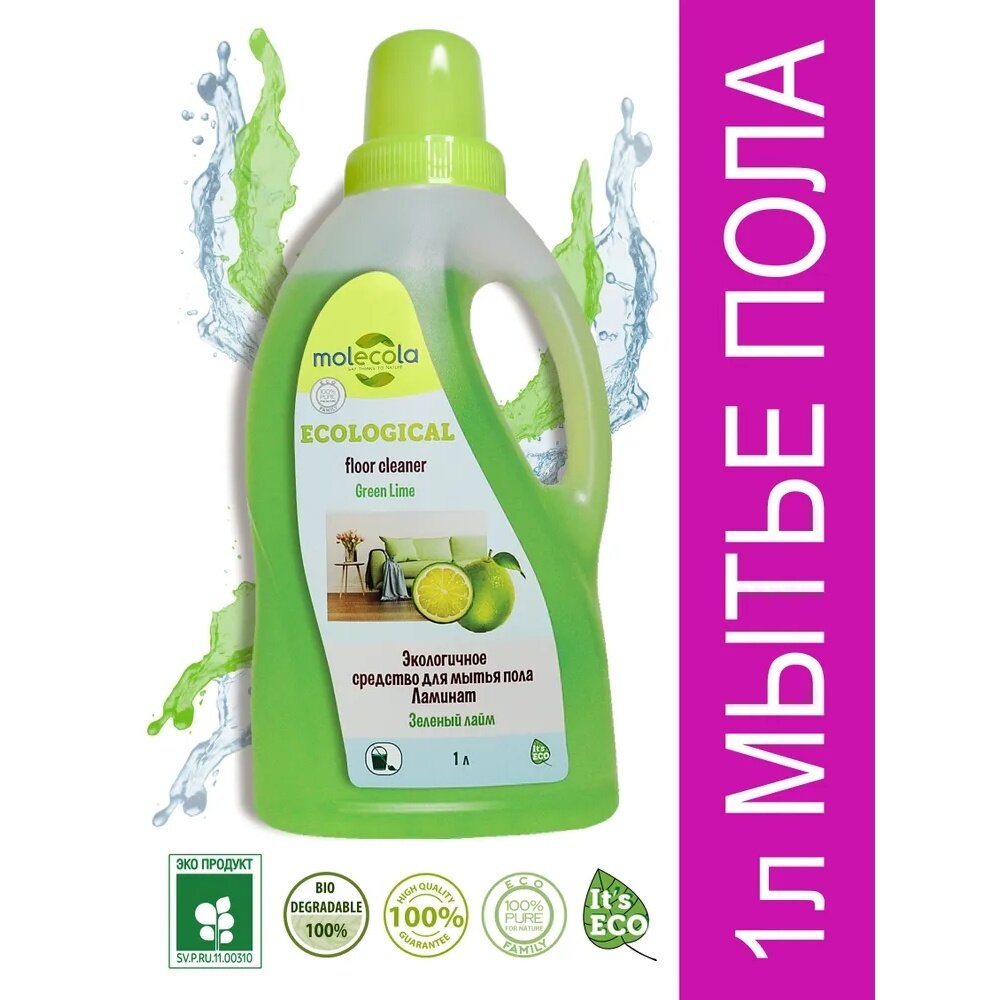 MOLECOLA - Универсальное средство для мытья пола Ламинат экологичное Зеленый лайм, 1 л
