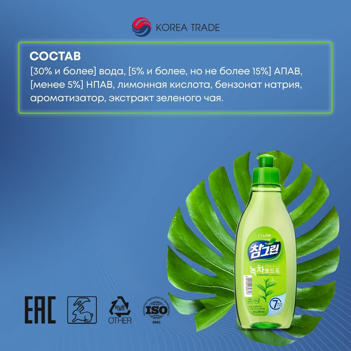Купить Средство CJ LION для мытья посуды, овощей и фруктов "Зеленый чай" для всей семьи, 300 г