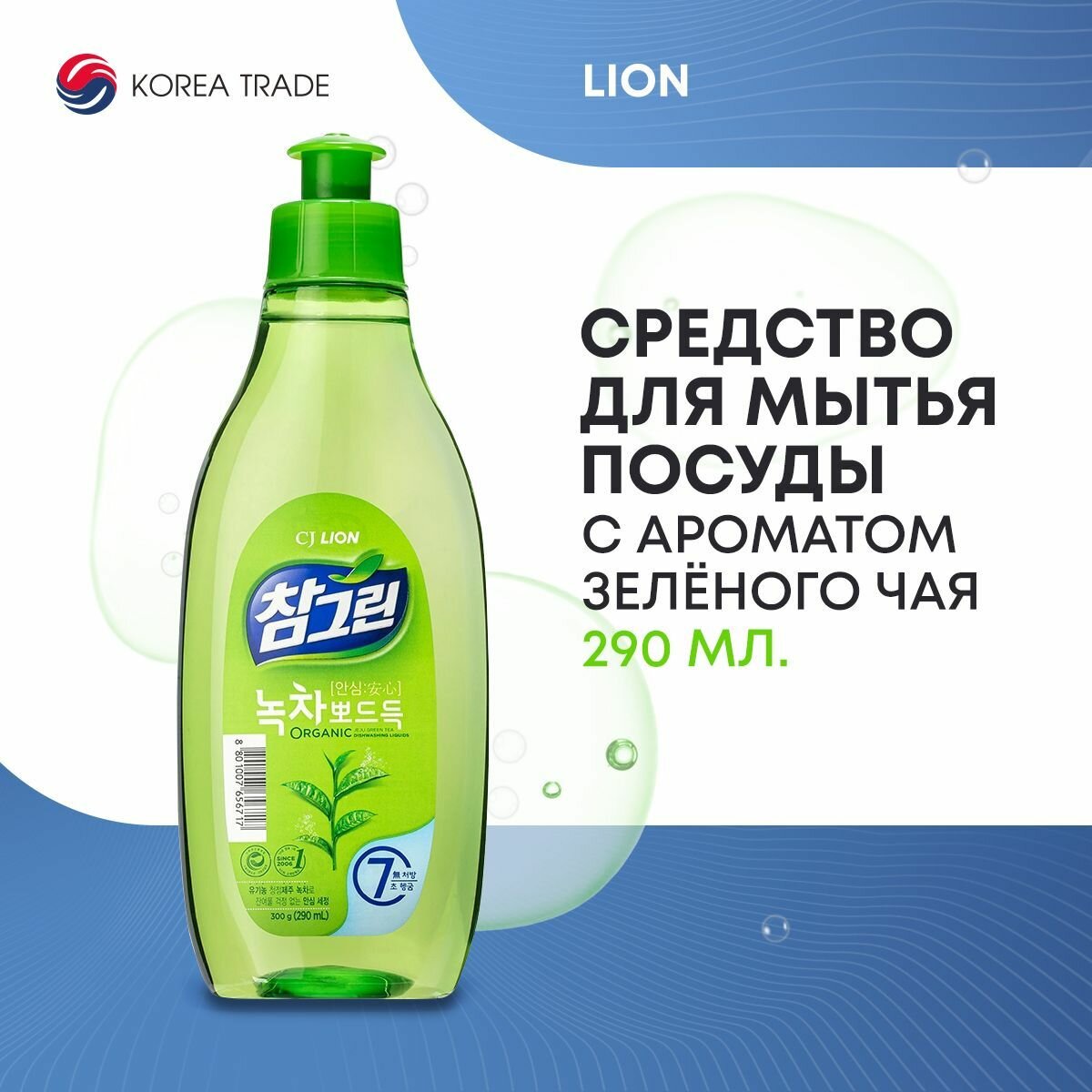 LION Chamgreen - Лион Жидкость для мытья посуды с ароматом зеленого чая, 800 мл -