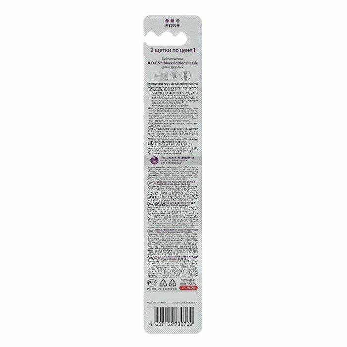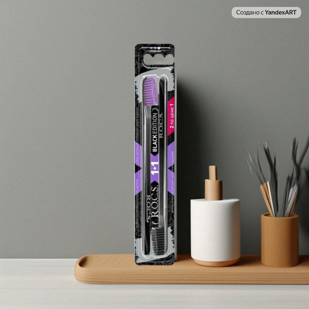 Купить Набор зубных щеток R.O.C.S. Black Edition Средняя (2 шт)