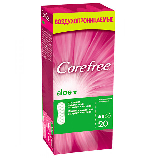 Carefree прокладки ежедневные Aloe, 2 капли, 20 шт., алоэ вера