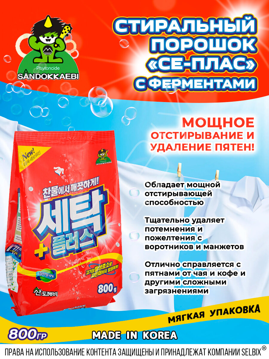 Sandokkaebi Стиральный порошок с ферментами для все видов ткани «Се-Плас» 800 гр. / порошок стиральный автомат мягкая упаковка / Стирка / Порошки Корея