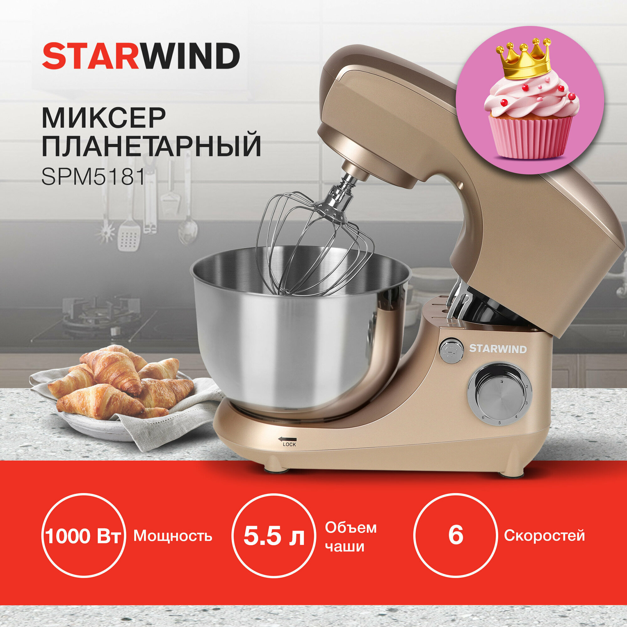 Купить Миксер планетарный Starwind SPM5181, золотистый