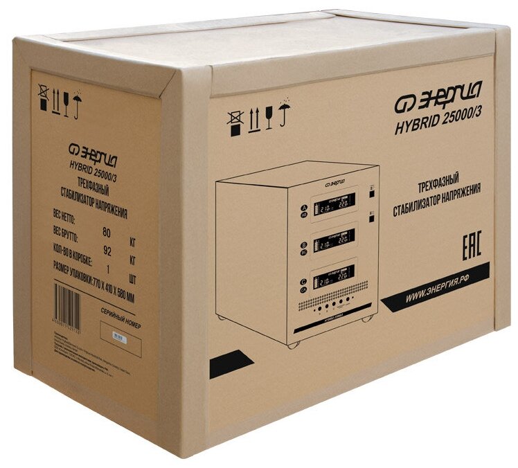 Стабилизатор напряжения трехфазный Энергия Hybrid 25000/3 II черный 25000 ВА 17500 Вт 350 мм 700 мм 500 мм 79 кг