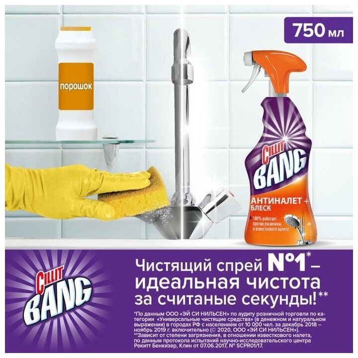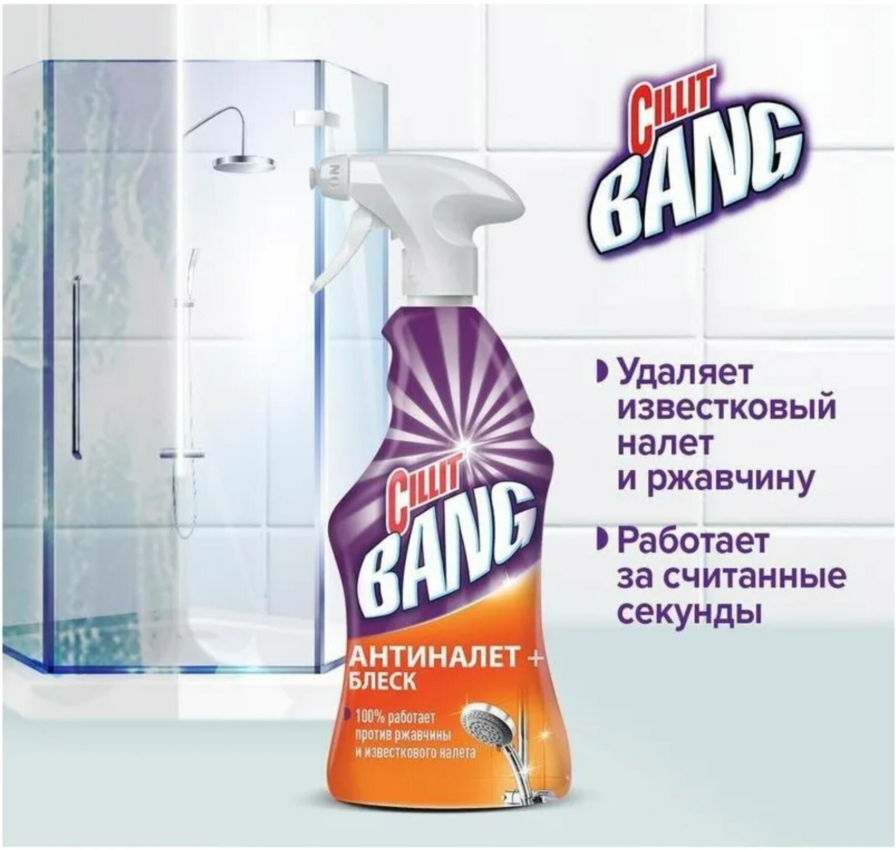 Чистящее средство для ванной CILLIT BANG Антиналет+Блеск, спрей от налета и ржавчины, 750 мл