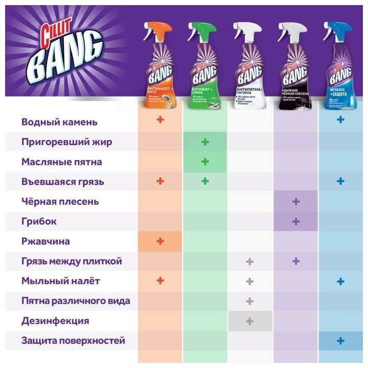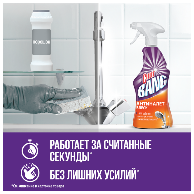 Чистящее средство для ванной CILLIT BANG Антиналет+Блеск, спрей от налета и ржавчины, 450 мл