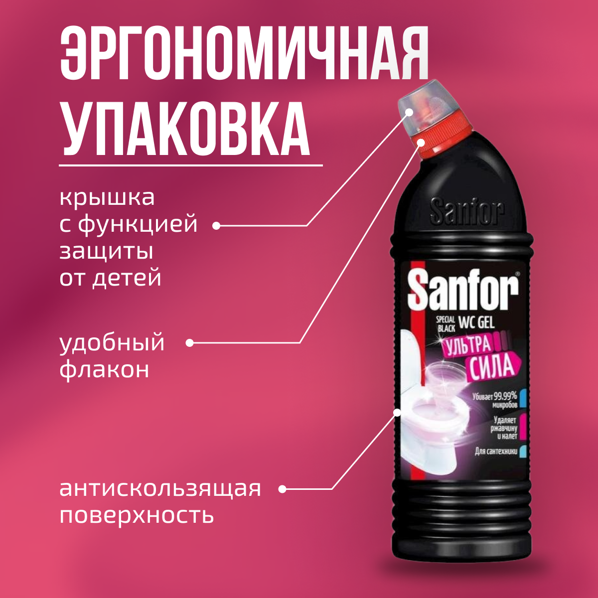 Sanfor WC гель чист для туалета SPECIAL BLACK 750 мл