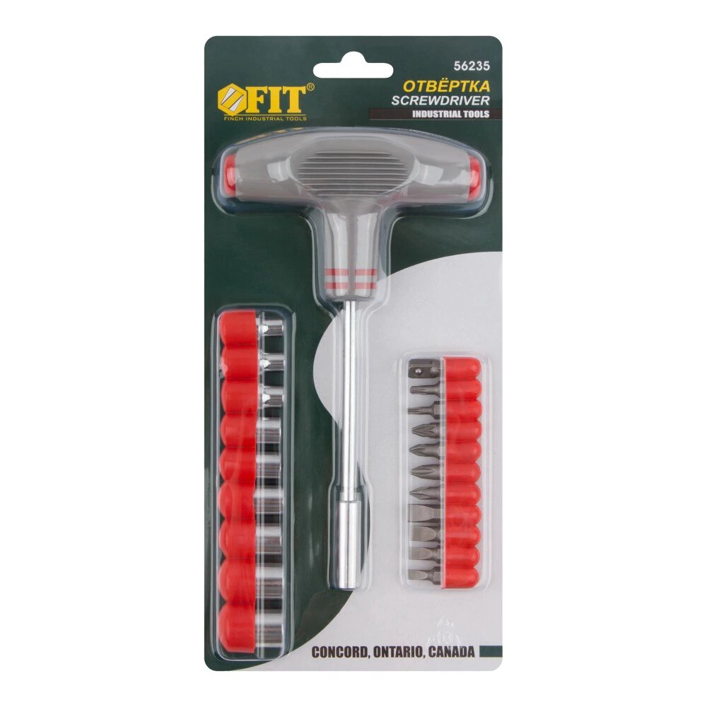 Т-образная отвертка FIT с набором насадок и головок 20 предметов