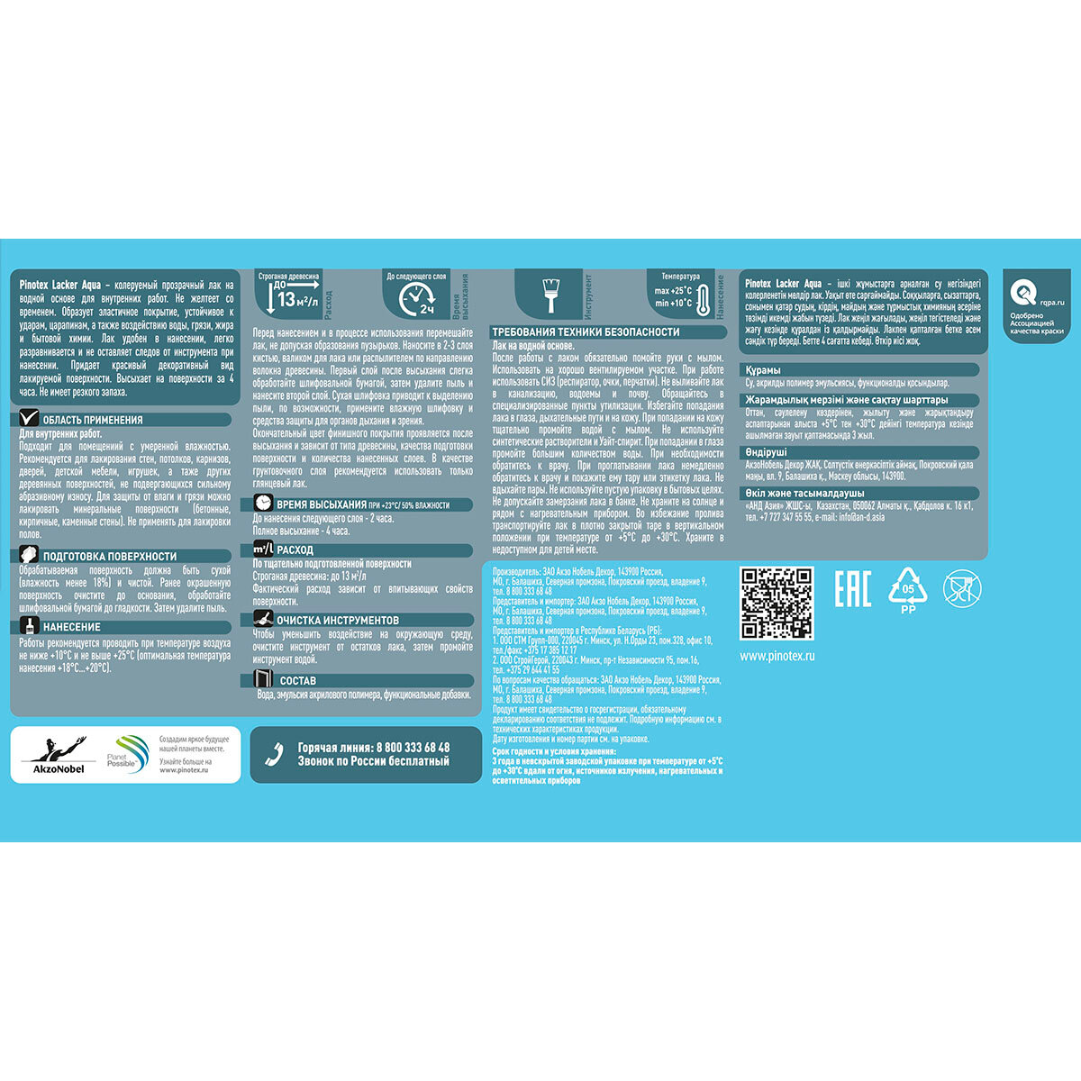 PINOTEX LACKER AQUA 10 лак на водной основе для мебели и стен, для внутр. работ, матовый (9л)
