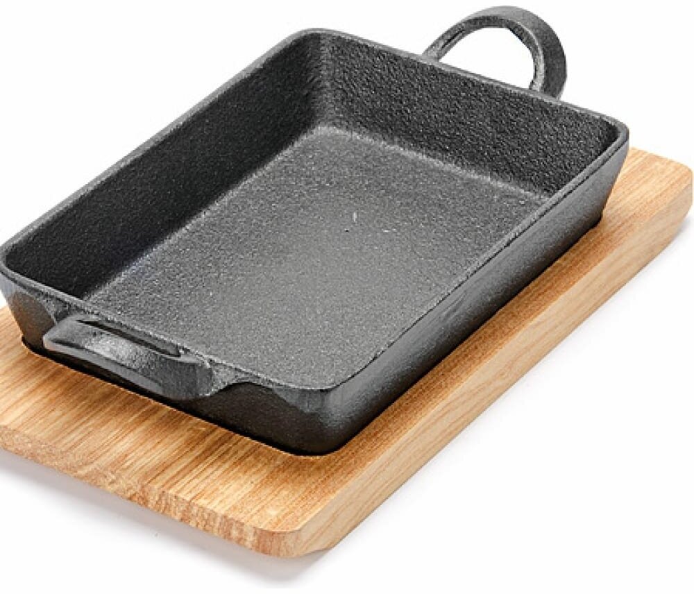 Купить Сковорода 16*11,5см чугунная с деревянной подставкой МВ 26799