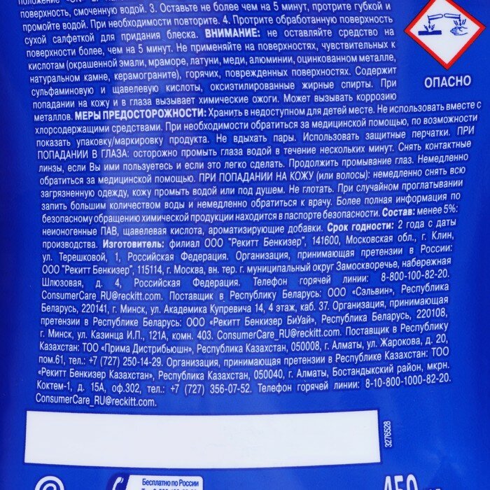 | Отзыв: | Хорошо справляется с заявленными причинами ржавчиной и налетом!Покупаю постоянно |
