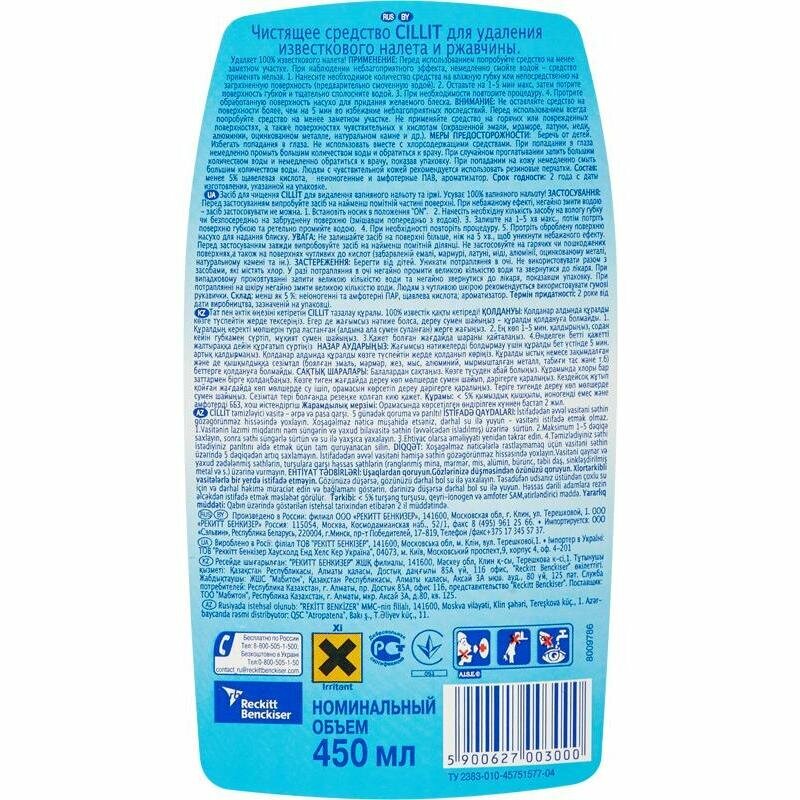Средство для удаления ржавчины и известкового налета Cillit, 450мл (7501908)
