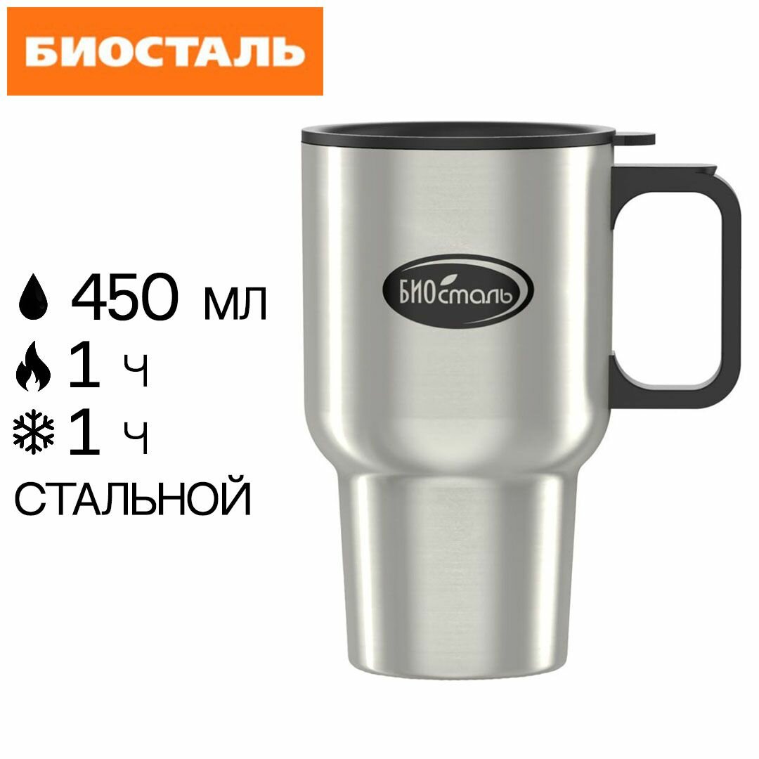 Термокружка BIOSTAL Авто 0,45 л, стальная