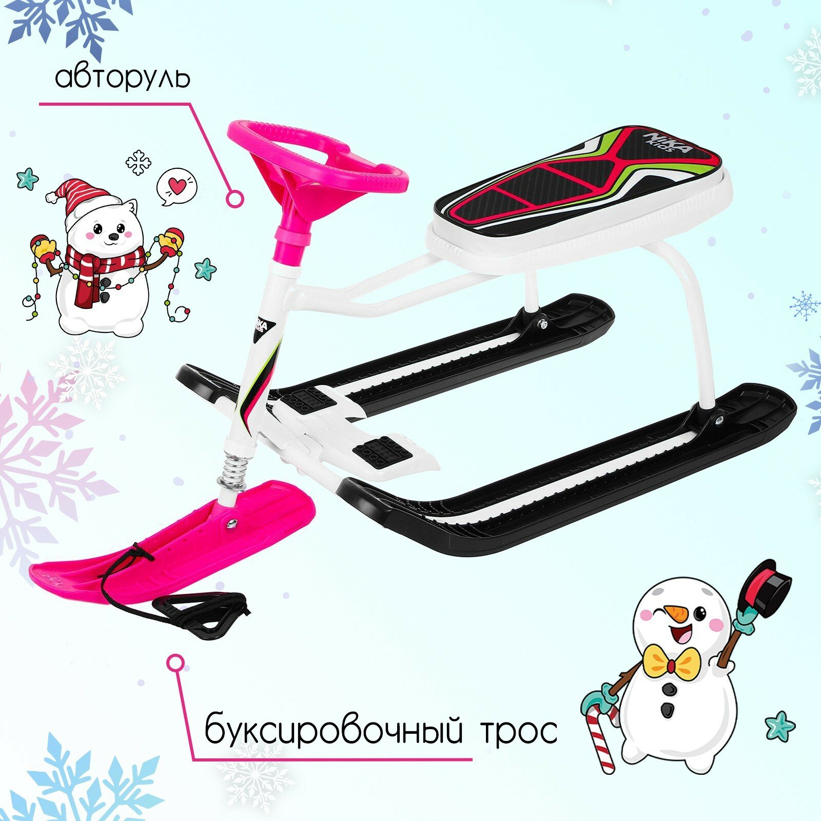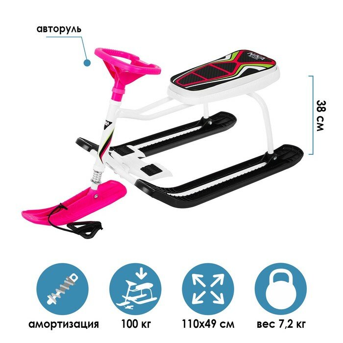 Снегокат Ника-SNOWPATROL (SNOWPATROL 2) рама белая со спинкой, трос авт. нам, велоруль