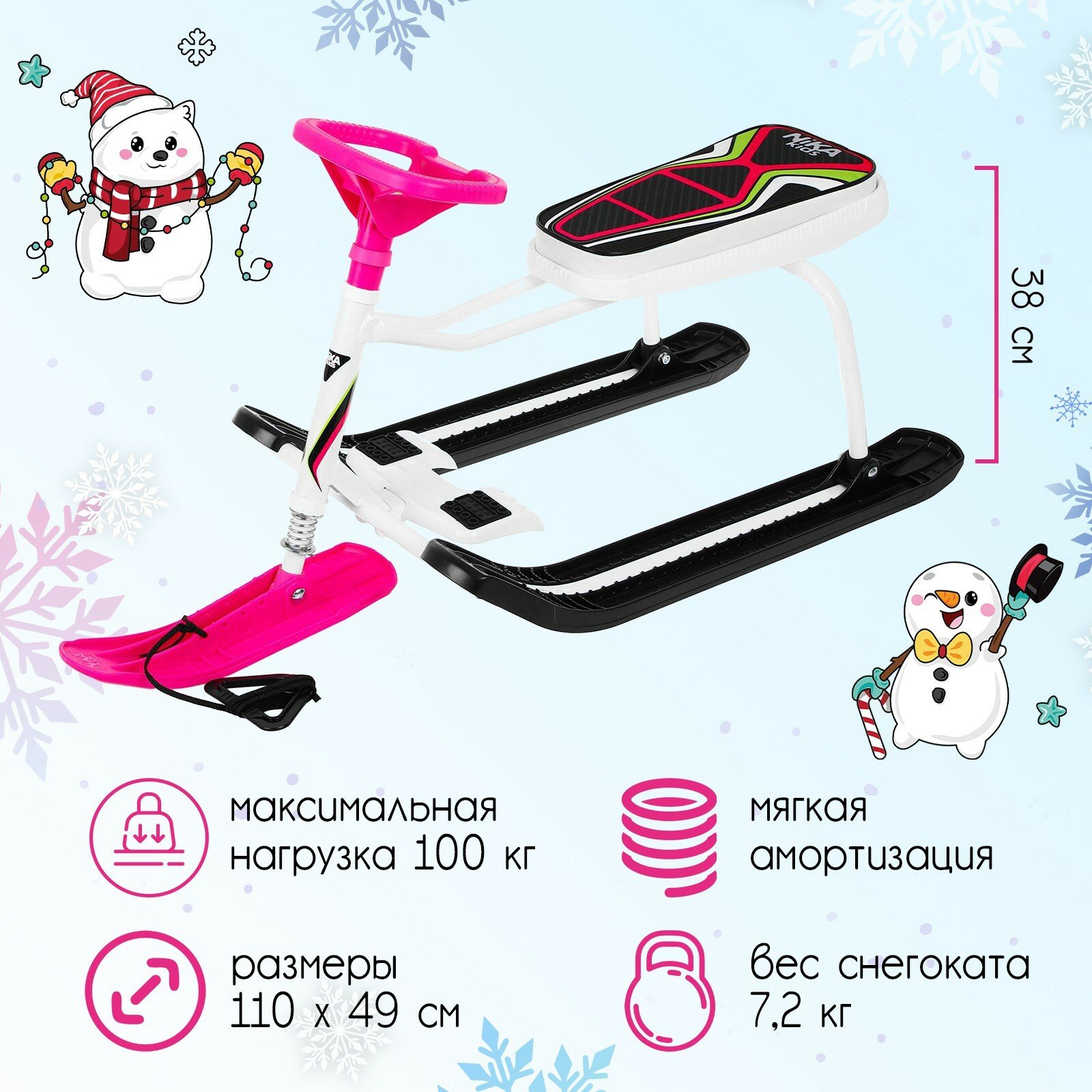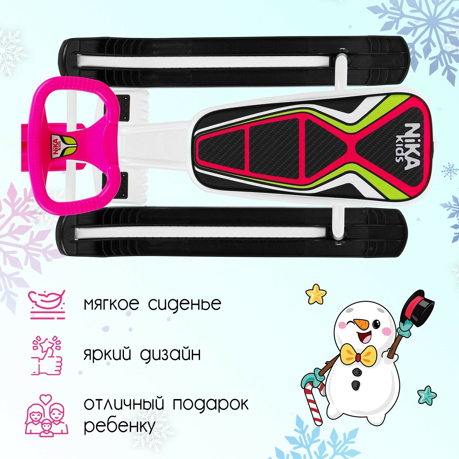 Снегокат-игрушка с рисунком Тимка спорт 1 ТС Nika черный/белый/розовый