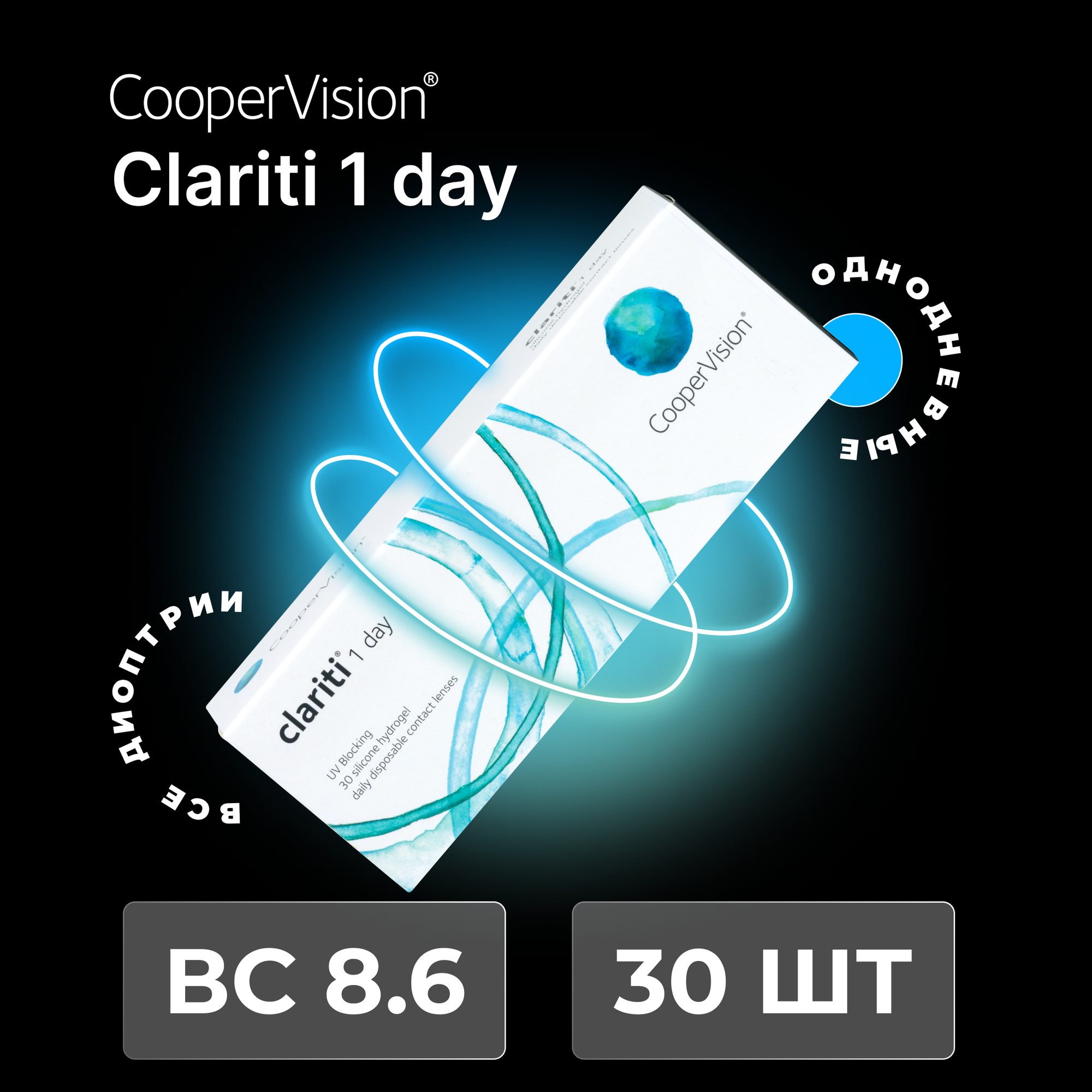 Купить "Контактные линзы CooperVision clariti 1-day (30 линз) +1.00 R 8.6, однодневные, прозрачные"