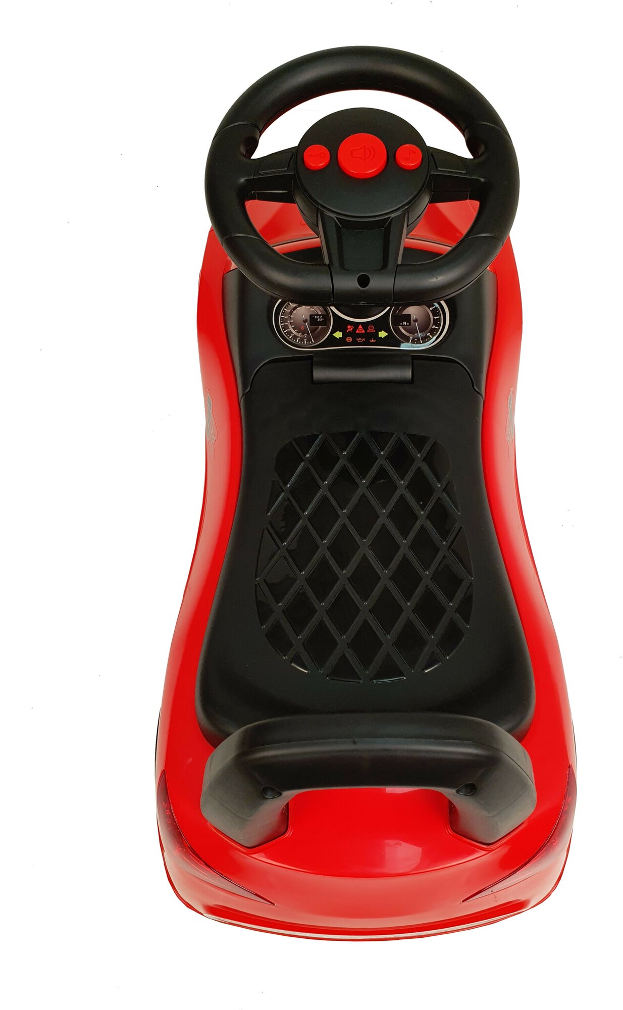 | Минусы: | Купили ребёнку на день рождения , на руле не работает 2 кнопки мелодии , очень расстроились , ребёнок на них нажимает, а музыки нет, работает только основной сигнал . |