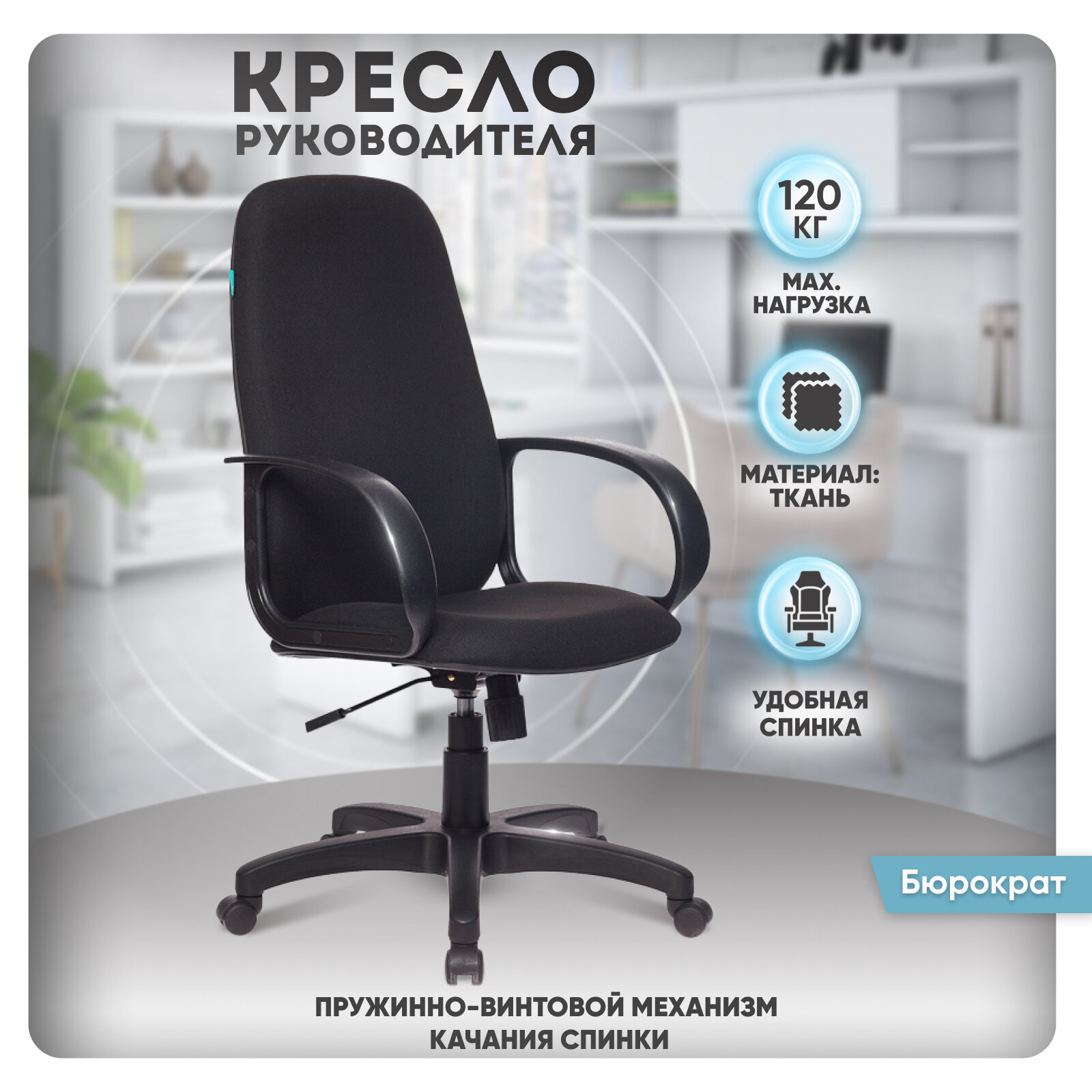 Кресло Бюрократ компьютерное черное, ткань, крестовина пластик - Кресло руководителя, с подлокотниками