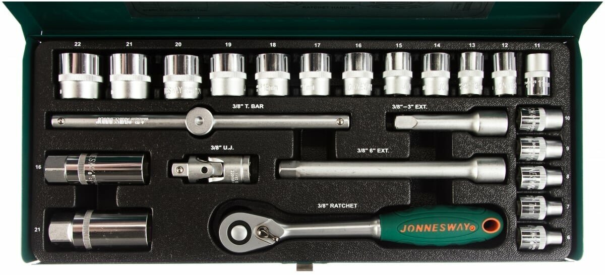 Набор головок торцевых 3/8"DR 6-22 мм, с аксессуарами, 24 предметов Jonnesway S04H3125S
