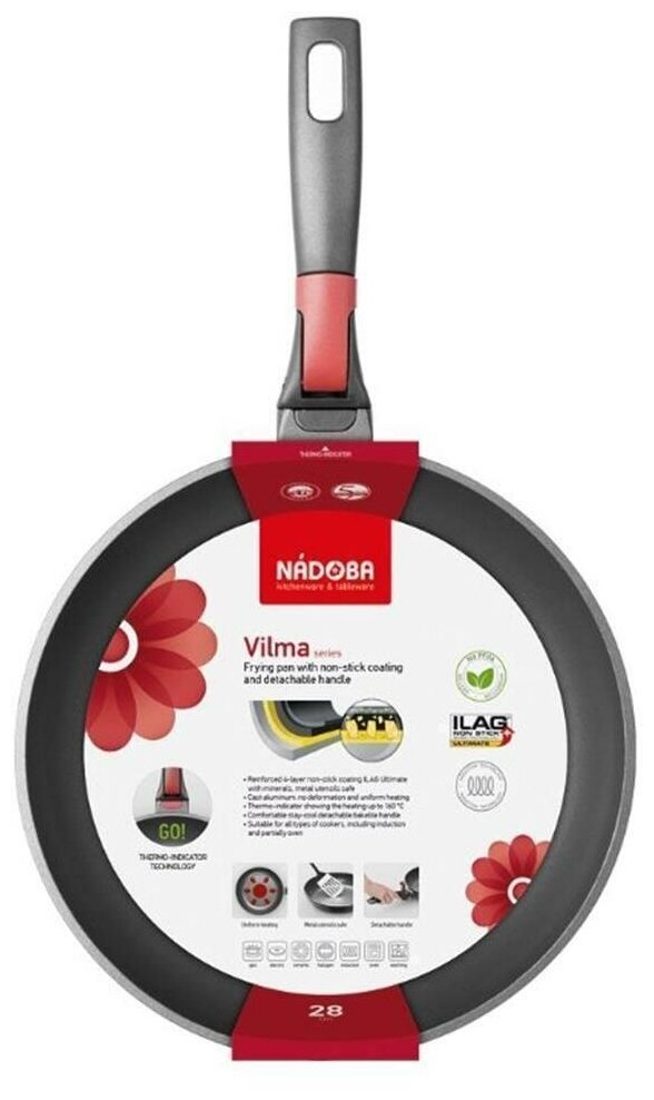 Сковорода с антипригарным покрытием и съёмной ручкой, 28 см, NADOBA, серия VILMA