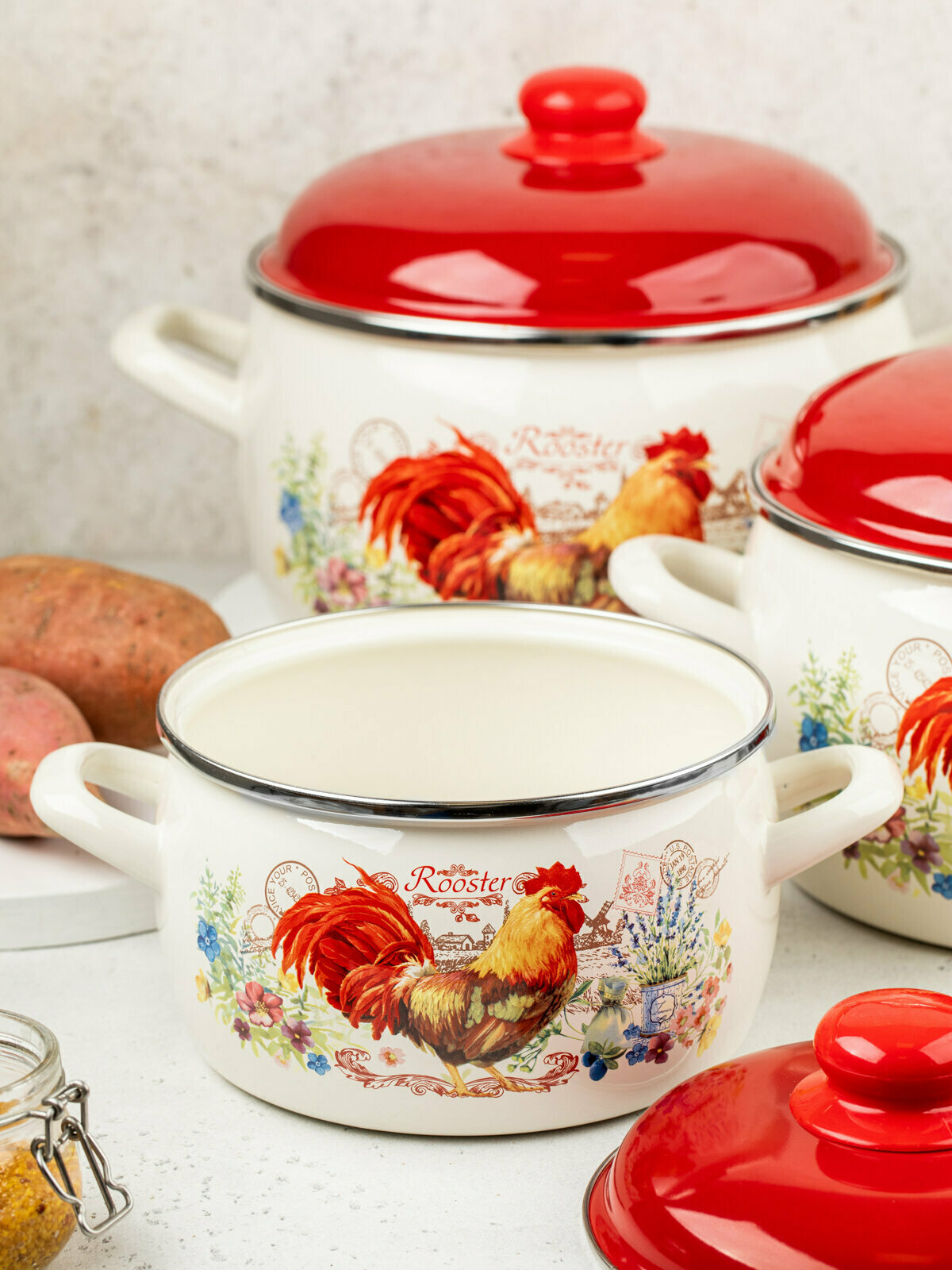 Кастрюля эмалированная Metrot Золотой петушок, с крышкой, 3 л