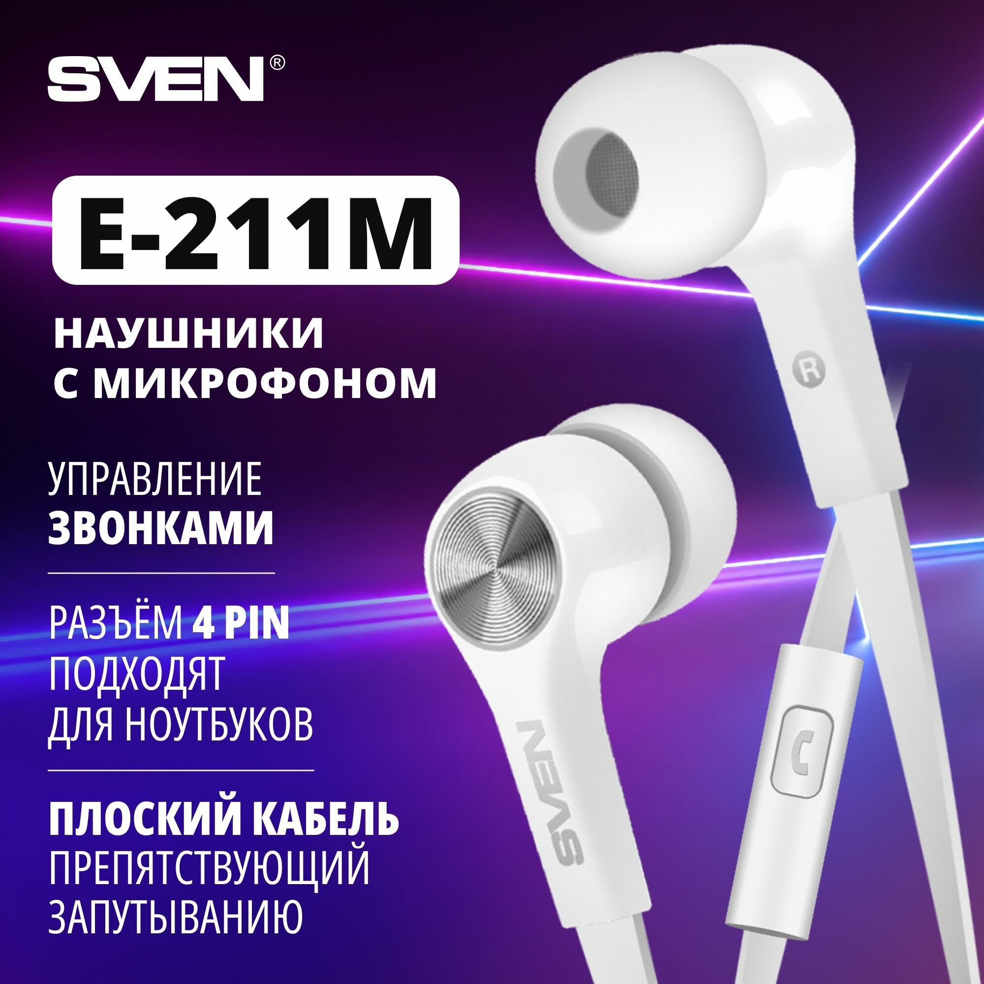 Внутриканальные наушники с микрофоном SVEN E-211M белый (SV-015749)