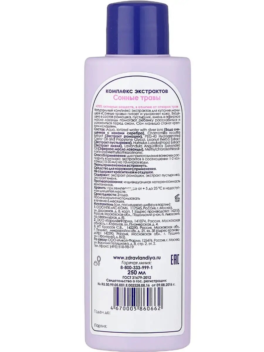 Экстракт "Сонные травы" для купания малышей "Страна Здравландия", с рождения, 250 мл