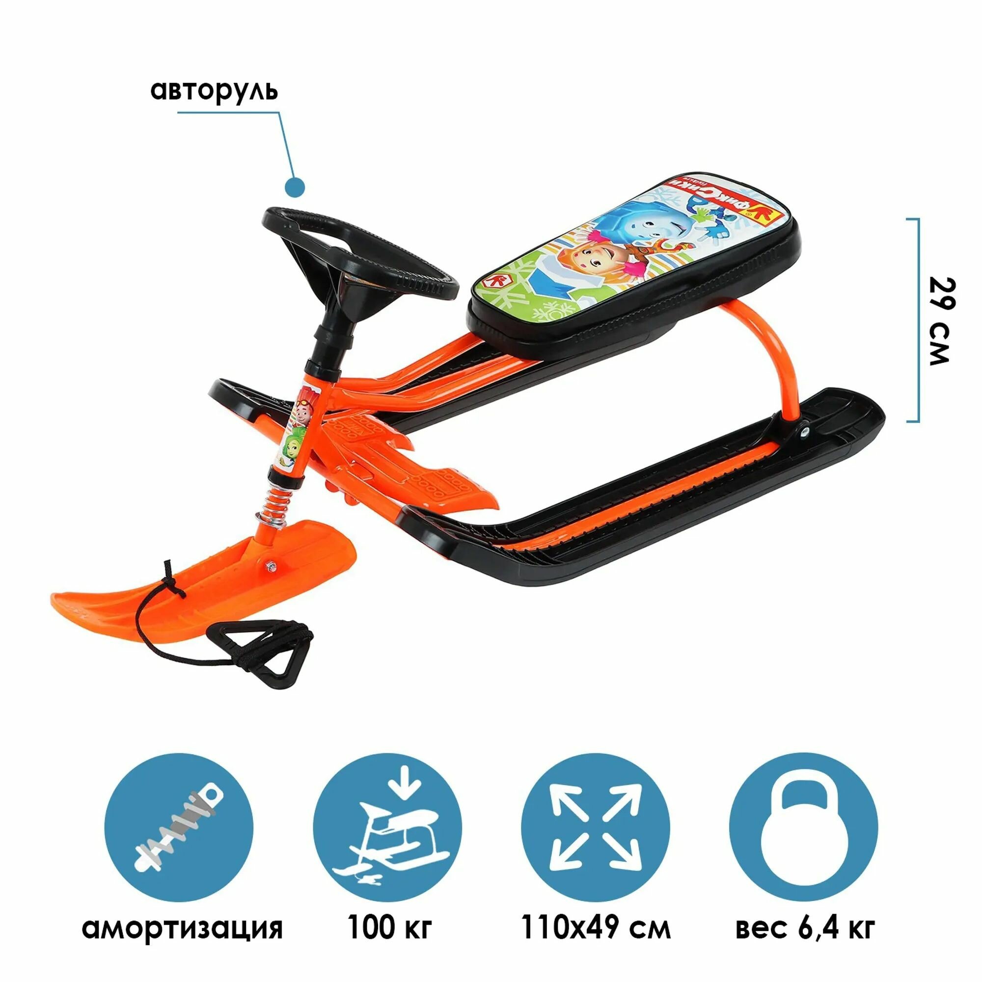 Купить Nika Kids Снегокат «Тимка спорт 2 Фиксики», ТС2/Ф12, цвет оранжевый/чёрный