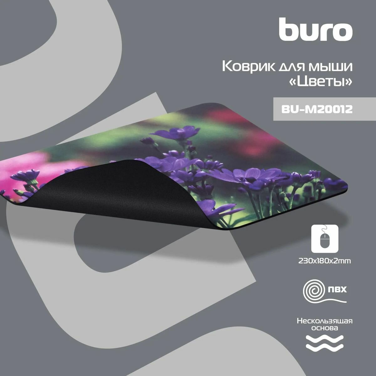 Купить Коврик для мыши Buro BU-M20012 (S) рисунок/цветы, PVC, 230х180х2мм